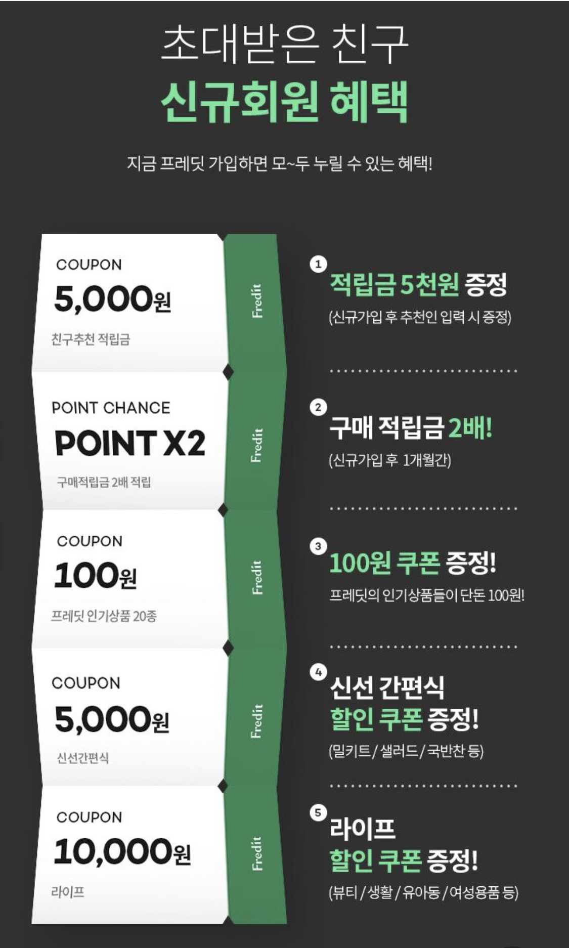 신규 회원자의 혜택은 다음과 같습니다.