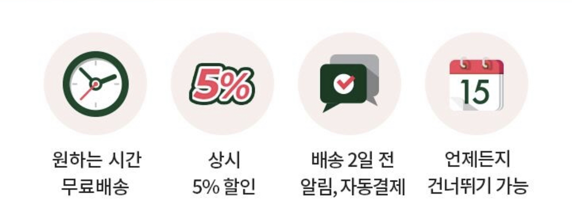 정기구독은 한국 야쿠르트의 특징적인 사업 모델이고, 다음과 같은 특징을 가지고 있습니다. 유제품류는 유통기한과 사용기한이 중요하기 때문에 정기적으로 드시는 분들이라면, 프레딧 내의 정기구독 기능을 활용해보면 좋을 것 같습니다.